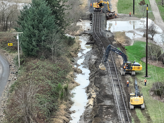 Yet teams persevered, working through ongoing soggy and chilly conditions to safely bring the last segment of washed-out track back into service on Friday, Dec. 19.